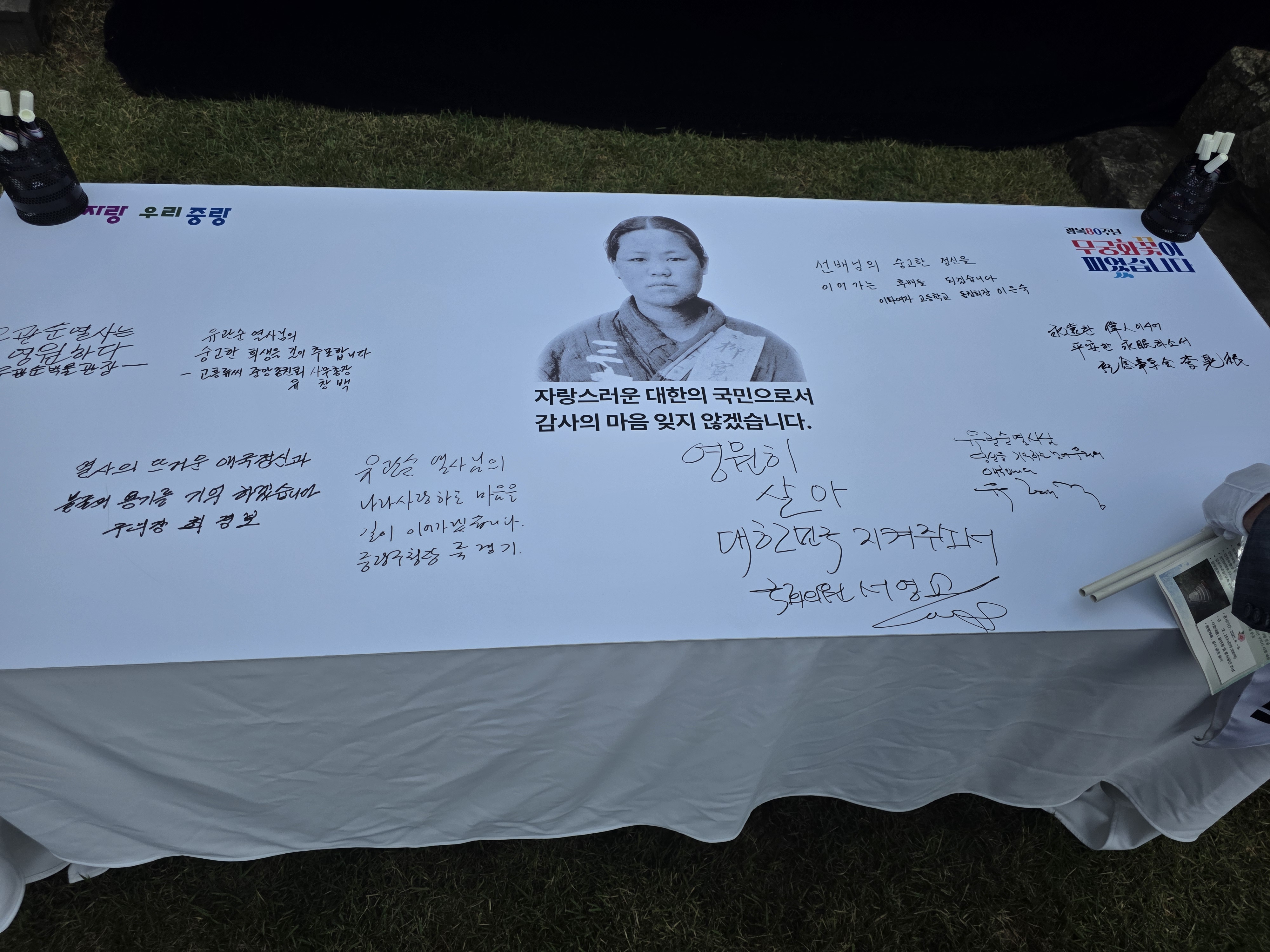 중랑구가 9월 28일과 망우역사문화공원에서 유관순 열사 순국 제105주기 추모식을 개최했다. 9월 28일 열린 유관순 열사 추모식은 유관순열사기념사업회와 공동 주최로 진행됐다. 류경기 중랑구청장과 유가족, 기념사업회 관계자, 국회의원, 시·구의원, 보훈단체, 지역 주민 등 100여 명이 참석했다. 행사에서는 추념사와 추모사, 헌화, 추모글 낭독, 역사합창단 및 지역 아동 참여 공연, 추모글 남기기, 만세삼창이 진행됐다. 올해는 새롭게 조성된 망우문화마당에서 추모영상 상영과 합창단 공연이 이어져 행사의 의미를 더했다. 유관순 열사는 3·1운동의 상징으로, 김영랑 시인은 순수 서정시의 거목으로 평가받는다. 두 인물을 기리며 조국을 위해 헌신한 이들의 정신을 계승하고 독립과 문화가 공존하는 망우역사문화공원의 가치를 알리는 데 이번 행사의 목적이 있다. 류경기 중랑구청장 [사진=중랑구청 제공] 류경기 중랑구청장은 "망우역사문화공원은 예술과 역사를 품은 우리 시대의 소중한 자산"이라며 "앞으로도 구민 누구나 우리 근현대사를 함께 기억할 수 있도록 망우역사문화공원을 꾸준히 가꿔 나가겠다"고 말했다. 출처 : 퍼블릭뉴스통신(Public news-network for TTL)(http://www.ttlnews.com) ![]() ![]() ![]()