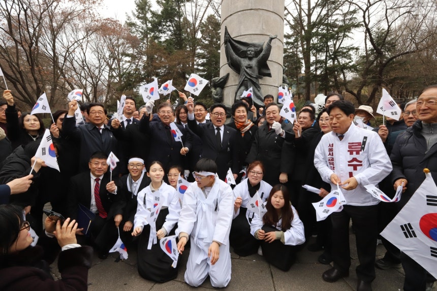유관순 후손들 3·1절 맞아 추념식…"나라사랑 정신 이어받자" 서울=연합뉴스) 이슬기 기자 = 유관순 열사의 후손인 고흥 유씨 중앙종친회는 3·1 운동 107주년을 맞은 1일 오후 서울 중구 장충단 공원 유관순 열사 동상에서 유관순 열사 추념식을 열었다.